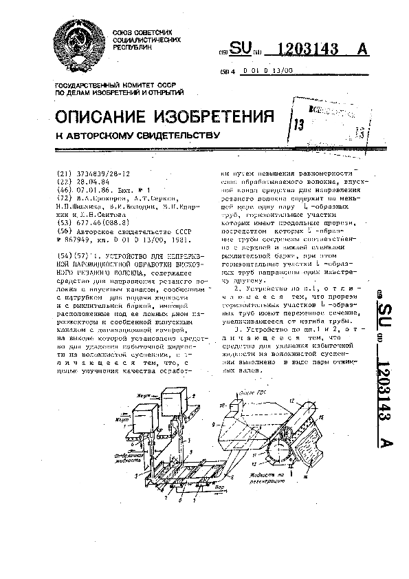 Устройство для непрерывной парожидкостной обработки вискозного резаного волокна / Прохоров В. А., Серков А. Т., Шишкина Н. П. [ и др.] // Описания изобретений (ретрофонд) / Комитет по патентам и товарным знакам России. – М., 2003. – 1986, № 1 — 1 файл: 190 Кб: ил. — (Патенты России). — Загл. с титул. экрана. — Поисковая система: ИПС MIMOSA GTI. — Систем. требования: Acrobat Reader. — Режим доступа: ftp://smolensklib.ru/bd/patent_ru/pt1203143.pdf. — <URL:ftp://smolensklib.ru/bd/patent_ru/pt1203143.pdf>.