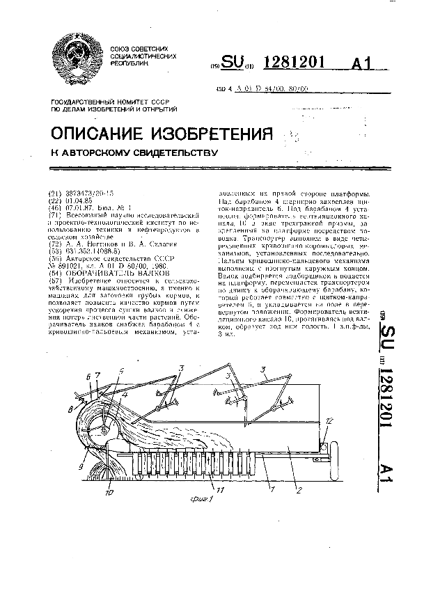 Оборачиватель валков / Ногтиков А. А., Силагин В. А.; заявитель: Всесоюзный научно-исследовательский и проектно-технологический институт по использованию техники и нефтепродуктов в сельском хозяйстве // Описания изобретений (ретрофонд) / Комитет по патентам и товарным знакам России. – М., 2003. – 1987, № 1 — файл: 148 Кб: ил. — (Патенты России). — Загл. с титул. экрана. — Поисковая система: MIMOSA GTI. — Систем. требования: Acrobat Reader. — Режим доступа: ftp://smolensklib.ru/bd/patent_ru/pt1281201.pdf. — <URL:ftp://smolensklib.ru/bd/patent_ru/pt1281201.pdf>.