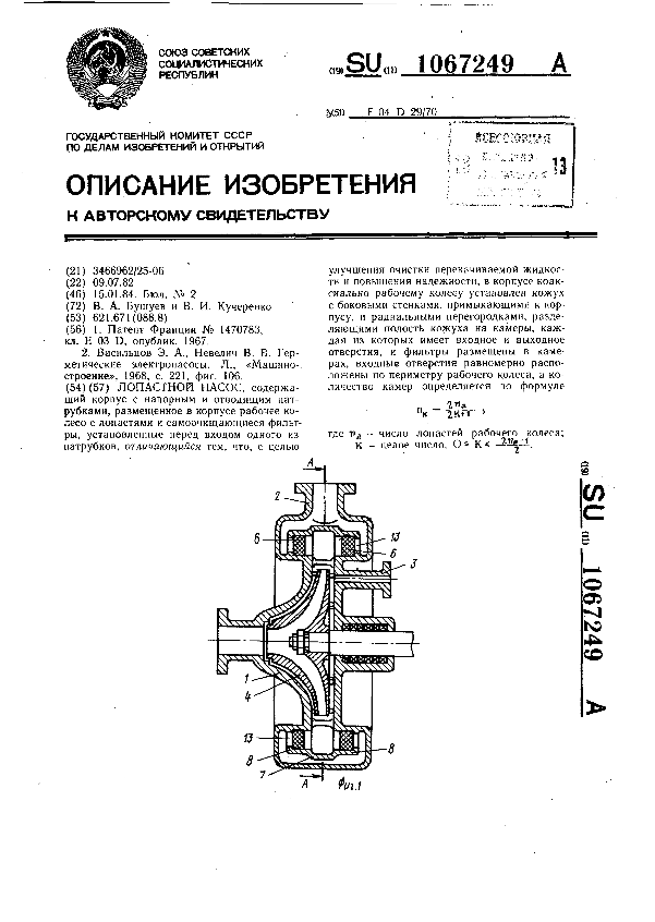 Лопастной насос / Бушуев В. А., Кучеренко В. И. // Описания изобретений (ретрофонд) / Комитет по патентам и товарным знакам России. – М., 2003. – 1984, № 1 — 1 файл: 184 Кб: ил. — (Патенты России). — Загл. с титул. экрана. — Поисковая система: ИПС MIMOSA GTI. — Систем. требования: Acrobat Reader. — Режим доступа: ftp://smolensklib.ru/bd/patent_ru/pt1067249.pdf. — <URL:ftp://smolensklib.ru/bd/patent_ru/pt1067249.pdf>.
