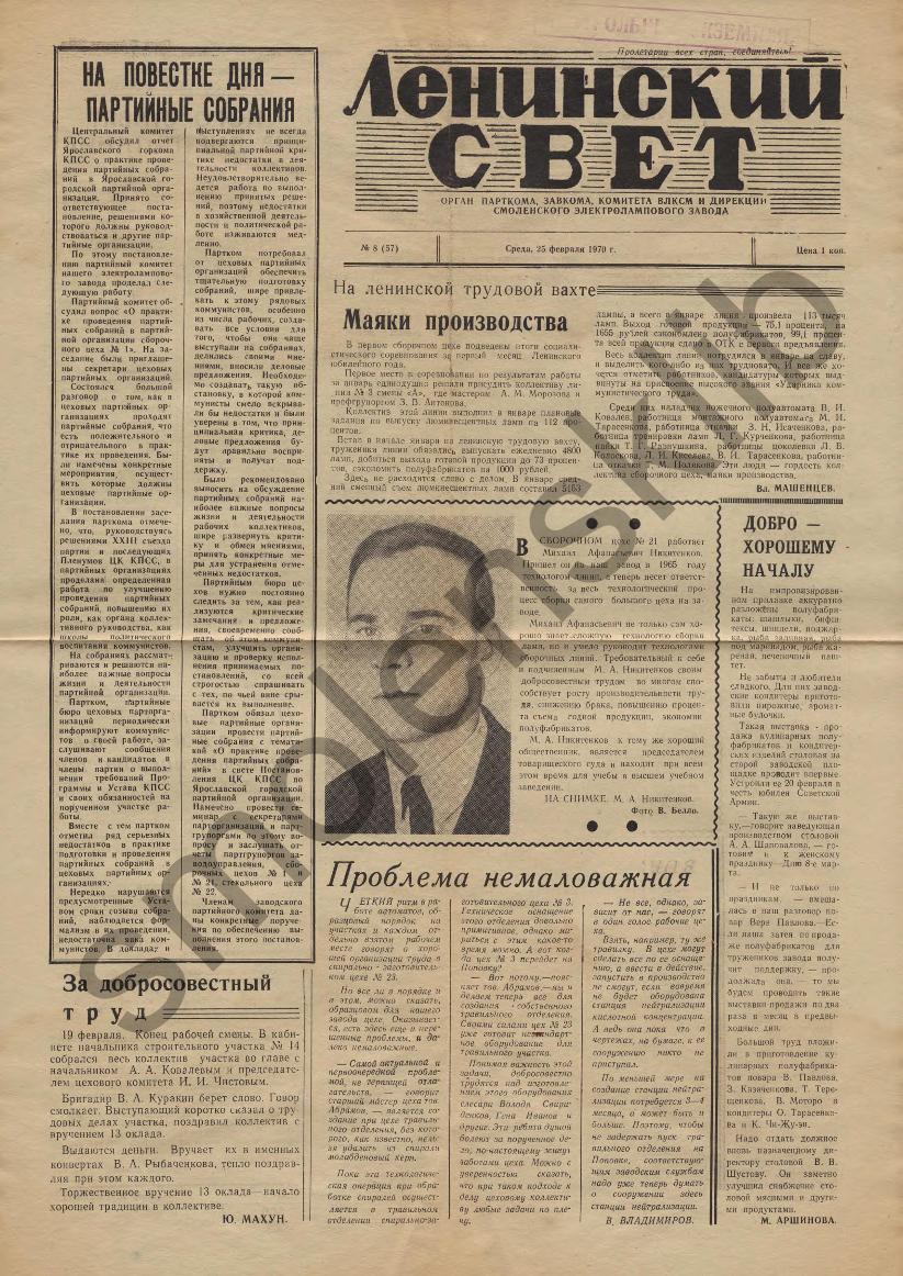 Ленинский свет: Орган партбюро, завкома, комитета ВЛКСМ и дирекции Смоленского электролампового завода. — Смоленск: Смолгортип., 1969-____. № 8.