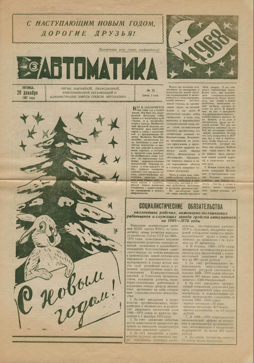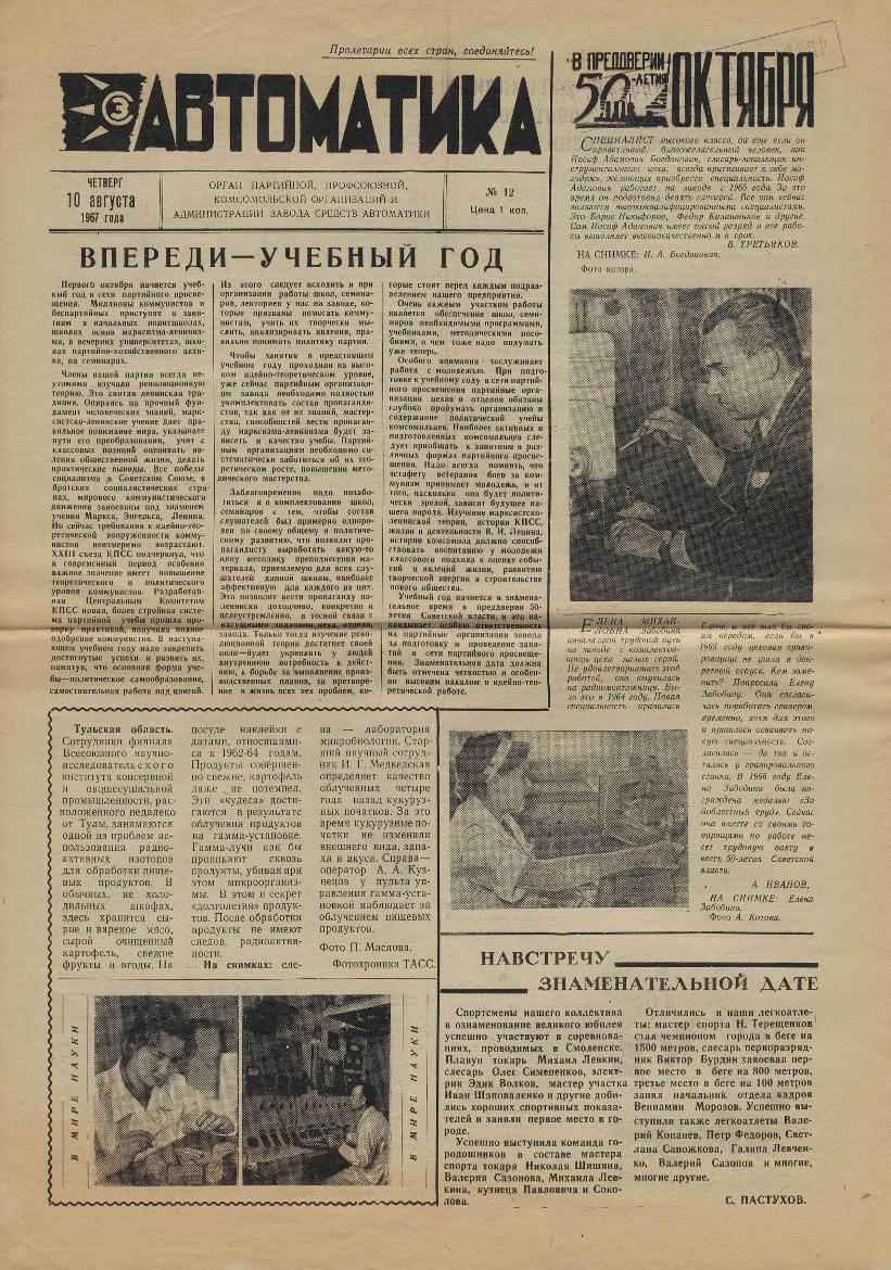 | 366 | Автоматика: Орган партийной, профсоюзной, комсомольской организаций и администрации завода. — Смоленск: Смолгортип., 1967-____. № 12.