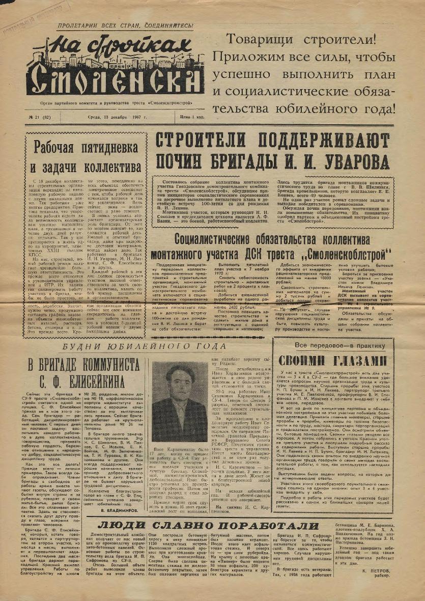 На стройках Смоленска: Орган партийного комитета и руководства треста "Смоленскпромстрой". — Смоленск: Тип. им. Смирнова, 1965-____. № 21.