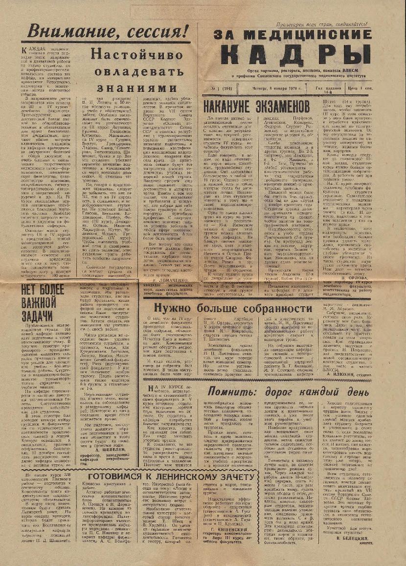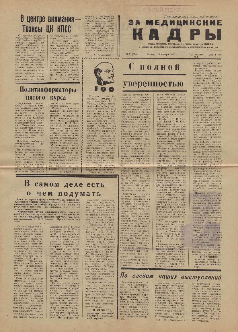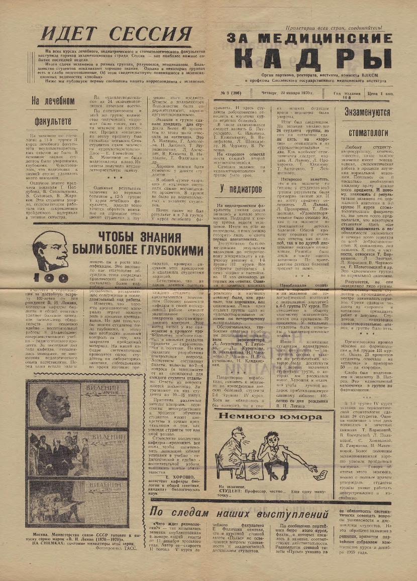 За медицинские кадры: Орган парткома, ректората, месткома, комитета ВЛКСМ и профкома Смоленского государственного медицинского института. — Смоленск: Тип. им. Смирнова, 1957-____. № 1.