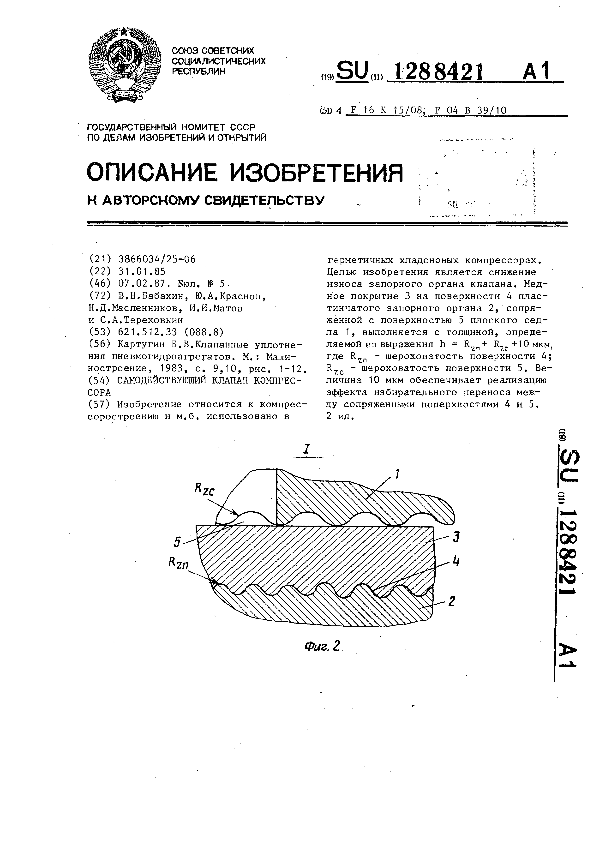 Самодействующий клапан компрессора / Бабахин В. Н., Краснов Ю. А., Масленников Н. Д. [и др.] // Описания изобретений (ретрофонд) / Комитет по патентам и товарным знакам России. – М., 2003. – 1987, № 1. — (Патенты России). — Загл. с титул. экрана. — Поисковая система: MIMOSA GTI. — Систем. требования: Acrobat Reader. — Режим доступа: ftp://smolensklib.ru/bd/patent_ru/pt1288421.pdf. — <URL:ftp://smolensklib.ru/bd/patent_ru/pt1288421.pdf>.